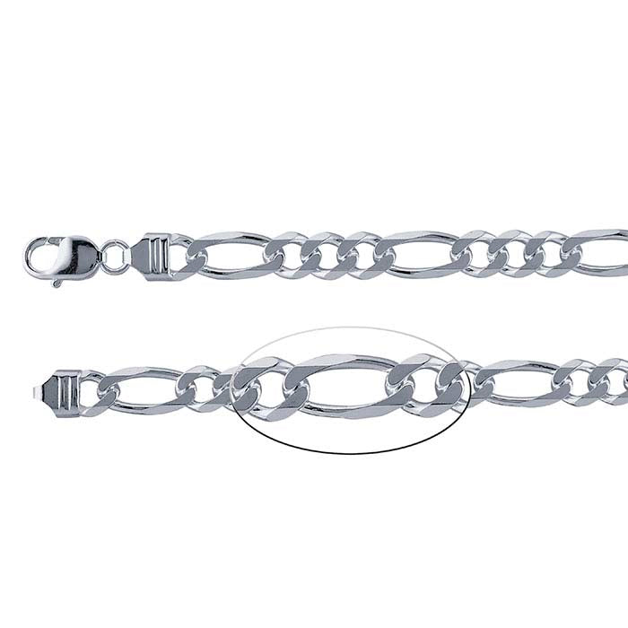 Sterling Silver 8.1mm Diamond-Cut Figaro Chain Bracelet