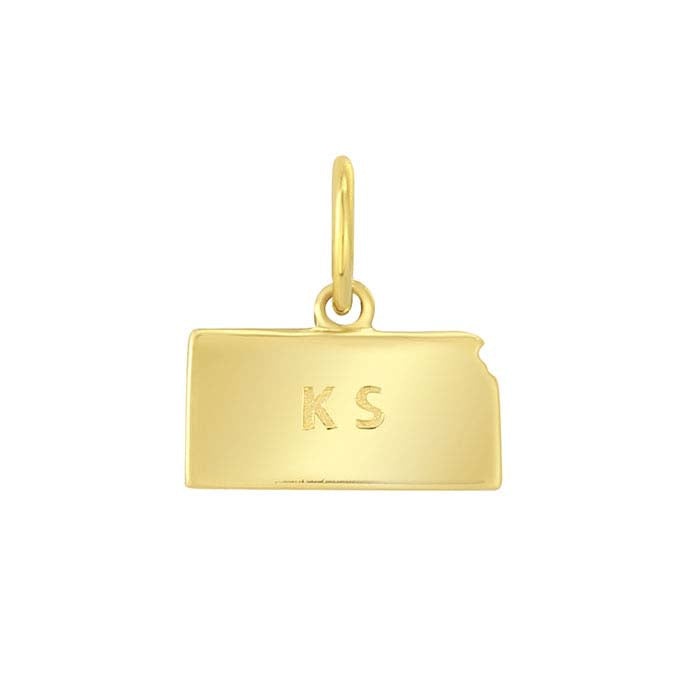 Этот плоский кулон из 14-каратного желтого золота в форме штата Канзас имеет двухбуквенное сокращение с одной стороны. Он идеально подходит в качестве подвески для серьги, шарма для браслета или как часть многослойного дизайна ожерелья или браслета.