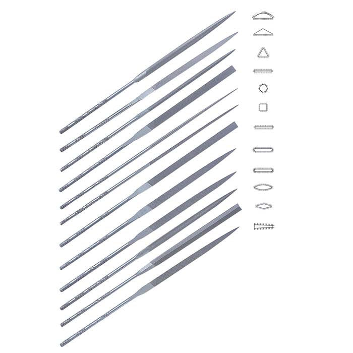 Этот набор игольчатых напильников Friedrich Dick включает 12 наиболее часто используемых форм напильников, обеспечивая наличие нужной формы для всех ваших ювелирных проектов. Защитная подставка удерживает двусторонние напильники в вертикальном положении на вашем верстаке и помогает защитить их от влажности и кислотных паров. В набор входят по одному напильнику каждой формы: warding, equalling, round-edge pillar, crochet, round, half-round, barrette, crossing, slitting, knife, three-square и square.