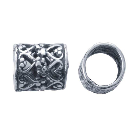 Sterling Silver 7,1 x 6 mm Rör Oxiderad Mönstrad Pärla