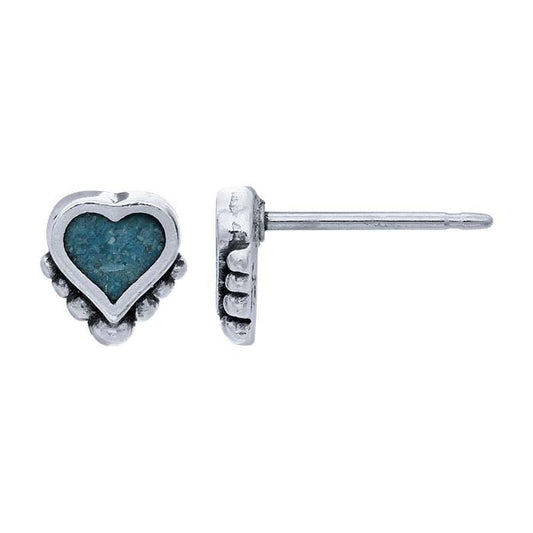 Sterling Silver Inlay Heart with Beaded Edge Post Earring