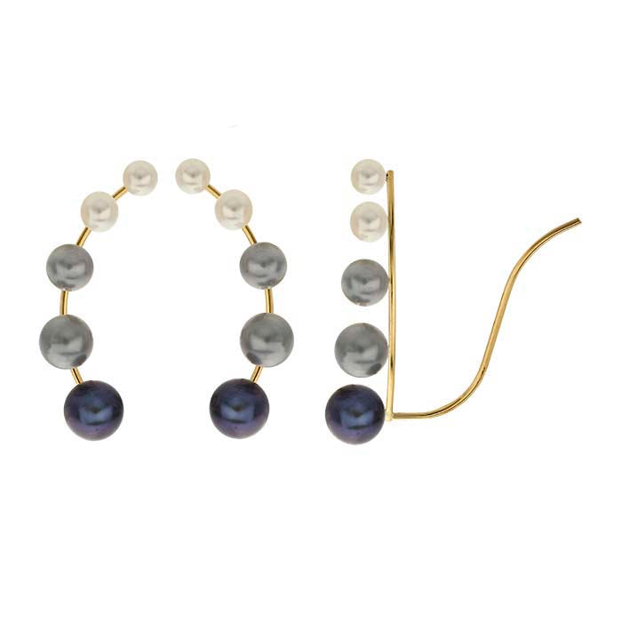 Denna lätta, 14-karats guldfärgade öronklättrare i gult guld har fem pärlmonteringar med piggar. Sätt en halvborrad pärla eller pärla på varje pigg och fäst den på plats med juvelerarens epoxi. Örontråds-klättrare gör det möjligt för kunder att bära örhänget så att designen ser ut att klättra upp längs örats kurva, eller bära det med designen böjd nedåt om så önskas, som en vanlig örontråd – vilket ger kunder två utseenden i ett. Säljs som ett par med höger- och vänstervändning.
