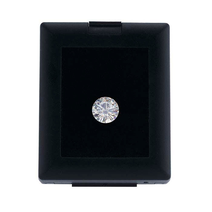Denna plastask för ädelstenar har ett glasfönster och ett mångsidigt ställ som gör att du kan ställa asken upprätt för visning. Ställ asken på sidan för att skapa ett landskapsformat visningsläge (2-3/8"H), ställ asken på ena änden för ett traditionellt porträttformat visningsläge (2-3/4"H), eller ställ asken på motsatt ände för ett lågt porträttformat visningsläge (2"H). Stället fälls platt in i botten av asken när det inte används. En vändbar, stansad skuminläggning—svart eller vit—innehålls. Visningsytan är 2 x 1", och ett diskret plastklämma håller asken stängd.