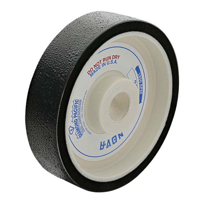 Slutför dina lapidary-uppgifter snabbare med detta 6" Nova-hjul som är inbäddat med diamant-slipmedel. Den tåliga, men ändå flexibla hartsen gör att hjulet anpassar sig efter dina stenar, vilket förhindrar repor och platta fläckar. Måste användas med vatten. Spindelstorlek är 1".