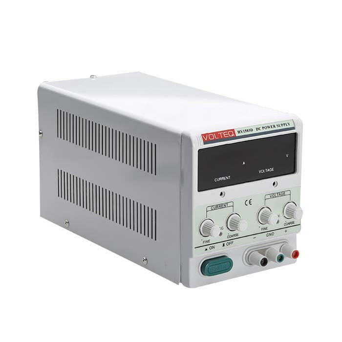 Att omvandla växelström till likström har aldrig varit så enkelt! Denna likriktare har en dubbel digital display, en för spänning och en för strömstyrka. Du kan styra spänningen (0-15) och/eller strömstyrkan (0-3) med separata rattar. Du kan förkroma ungefär 43 kvadrattum yta. Maskinen har också positiva och negativa uttag; ledningar ingår.