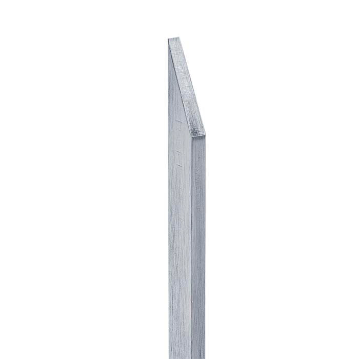 Denna E.C Muller #16 raka linjegraverare erbjuder åtta linjer jämnt fördelade (0,2 mm mellanrum) på graverarens skäryta (bredden är cirka 1,6 mm). Linjegraverare finns med olika antal linjer på skärytan och graverarens storleksnummer definierar avståndet mellan dessa linjer. Använd linjegraverare för blockbokstäver, florentinska finishar, bakgrundsskuggning och korshatchmönster på plana eller konvexa metallytor; de är särskilt idealiska för västerländska gravyrstilar. Välj raka linjegraverare för de flesta tillämpningar; förkorta, forma och slipa ytan efter behov för det arbete du utför. Den höghaltiga kolstålsammansättningen i denna graverare gör att den lätt kan formas och slipas—lämplig för användning på alla metalltyper.