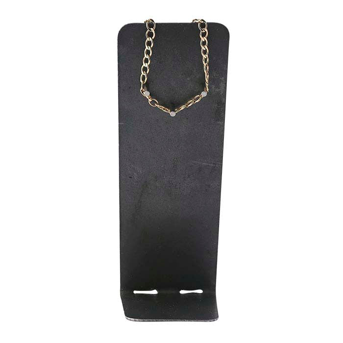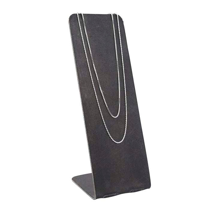 Detta handsmidda metallstaffli ger en distinkt kant till dina örhänge- och hängsmyckesdisplayer samtidigt som det håller ditt arbete i centrum. Häng enkelt örhängen över den övre kanten på staffliet för att visa upp dem. Två magnetiska pluggar (1/2"L x 1/8" diameter, ingår) ger ett genialt sätt att presentera hängsmycken eller kedjor. Placera magneterna var som helst på baksidan av staffliet för att fungera som pluggar som håller en kedja på önskad längd för visning. Staffliet skapades av smeden Steven Bronstein, som strävar efter att skapa föremål som "förenar det primitiva charmen i smidesjärn med energin och intresset i en mer samtida design." Detta handsmidda ståldisplay är tillverkat med 85 % återvunnet material och är avslutat med en naturlig vaxförsegling för att skydda mot ytterligare rost.