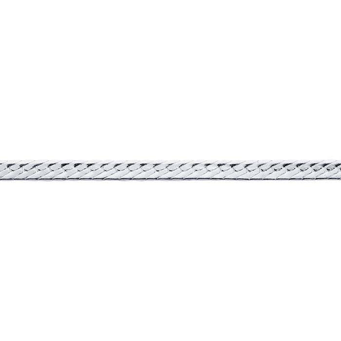 Denna halskedja i sterlingsilver med fiskbensmönster erbjuder en klassisk look med sin breda, låga profil som ligger platt över halslinningen. Fiskbenskedjan är konstruerad av flera rader V-formade länkar, arrangerade så att riktningen för varje rad är motsatt raden bredvid. Länkarna ligger platt och ger kedjan ett smidigt, mycket flytande utseende. Förvara denna kedja platt för att förhindra att den knycks. Denna typ av kedja är idealisk som ett fristående statement-smycke; den rekommenderas inte för hängen.