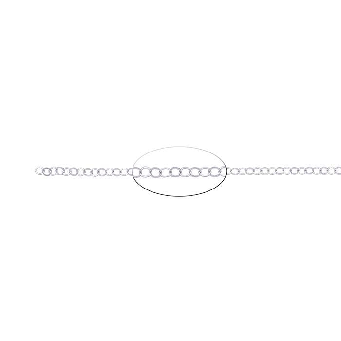 De platta länkarna i denna sterling silver runda kabelkedja fångar ljuset vid varje rörelse; den är en idealisk grund för hängen, droppar eller dinglande smycken och ser fantastisk ut med berlocker tillagda på de enskilda länkarna.