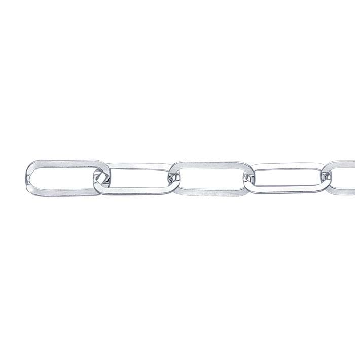 Med platta kanter och en strömlinjeformad profil fungerar denna ovala kabelkedja i sterlingsilver väl som en fristående kedja, men ger också generösa långa länkar för att fästa hängen och droppar, eller för att använda korta kedjelängder för att koppla samman större element.
