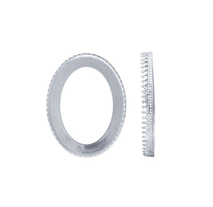 This open-back sterling silver bezel cup features a decorative, gallery-wire design and holds one 40 x 30mm oval stone or glass cabochon, flat-back stone or crystal. With walls modeled from decorative gallery wire, this bezel cup adds distinctive flair to any design. This easy-to-use bezel cup saves you time and provides clean lines and a professional-looking finish. Use it to create everything from earrings to cuff links to pendants. Simply solder the bezel cup to a finding or design, and set as desired.