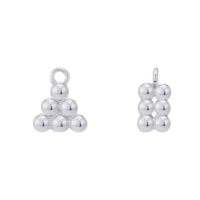 This sterling silver component features a beaded pyramid design and a closed ring. Use it as an earring drop or string it on a cord or chain as a charm or pendant. For a bold look, combine multiple components to create a necklace or bracelet with lots of movement and interest. This component is plated with rhodium to ensure a durable, tarnish-resistant finish.