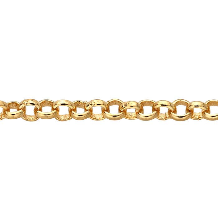 Denna 14/20 guldfyllda runda rolo-kedja i gult guld är en grundpelare för smyckesdesigner och ett idealiskt val för att lägga till hängen, droppar och berlocker. Kedjan är förgylld med 18 karat gult guld och inkluderar en kvalitetsbricka. Länkarna som utgör rolo-kedjan är skapade av platt eller halvrund tråd så att varje länk är bredare än trådens tjocklek. Formen på länkarna kan vara rund eller oval—länkarna på denna kedja är runda.