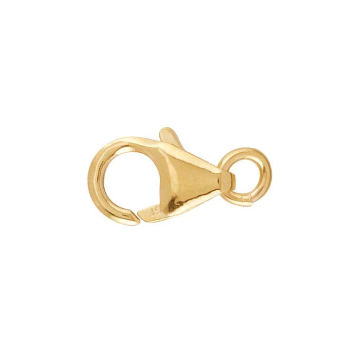 En av de vanligaste låsstilarna, hummerlåset erbjuder ett strömlinjeformat utseende och god säkerhet för alla typer av kedjor. Namngivet efter dess likhet med en hummerklos rörelse, har detta lås en krokform med en fjäderdriven stängning. Tryck helt enkelt ringen i motsatt ände av kedjan mot låset och tryck det tillräckligt för att låta ringen passera över kroken (eller tryck på frigöringsspaken för att öppna låset). Fjädern håller låset stängt tills spaken drar upp det för att släppa ringen. Guldpläterade lås ger karatguld till en mer överkomlig kostnad än massivt guld, vilket gör att du kan designa med den ädla metallen kunderna söker och erbjuda dina design till ett pris som uppskattas.