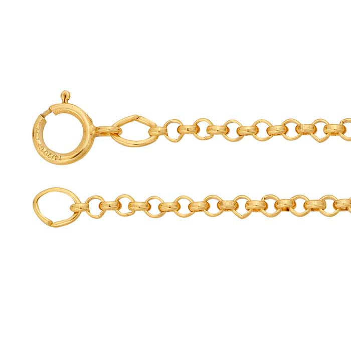 Denna 14/20 guldfyllda runda rolo-kedja är en grundpelare för smyckesdesigner och ett idealiskt val för att lägga till hängen, droppar och berlocker.