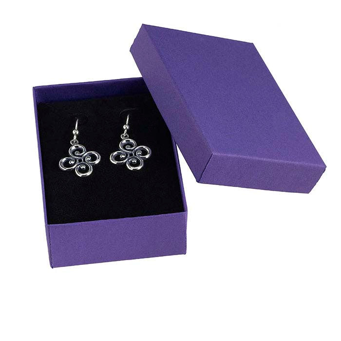 Denna insats gör det möjligt att skapa en renare, prydligare presentation för ett par örhängen, en brosch (horisontell nål) eller ett hänge i vilken bomullsfylld ask som helst. Svart velourflock täcker den 100 % återvunna stansade kartonginsatsen (50 % förkonsumentfiber och 50 % efterkonsumentfiber) och passar i vilken ask som helst som mäter cirka 3-1/16" x 2-1/8". Vik kanterna nedåt längs den prägade linjen och placera insatsen i asken ovanpå polyfillen.