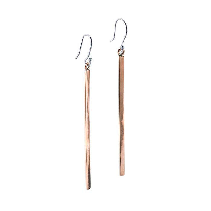 Dessa färdiga öronkrokar i sterlingsilver har långa kopparstavar (3"), vilket skapar en dynamisk tvåfärgad look.