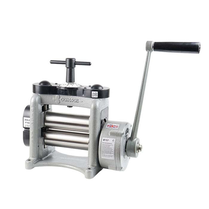 Byggd med Durstons prisbelönta design och ingenjörsexpertis, låter Durston Agile F165 valsverket dig gradvis minska plåttjockleken till exakt den kaliber du behöver för ditt metallformningsarbete. Du kan också använda mönsterplåtar för att prägla plåten för mer detaljerade och komplexa mönster. De plana rullarna på valsverket är generösa 165 mm (6,5”). Agile Design Durston är världens främsta tillverkare av valsverk; de är kända för pålitlighet och robust konstruktion med högkvalitativa metallväxlar och rullar för en livslängd av service. Detta Durston Agile F165 valsverk har några små designändringar som gör detta lättare och mer prisvärda valsverk tillgängligt för varje juvelerare utan att kompromissa med någon driftseffektivitet eller kvalitet som du förväntar dig av ett Durston valsverk.