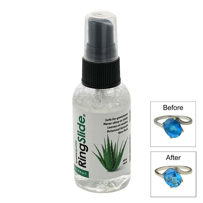 This Sparkle Sparkle® ring slide allows stuck or tight rings to gently slide off the finger. The botanical solution is non-toxic and safe for use on all metal types.