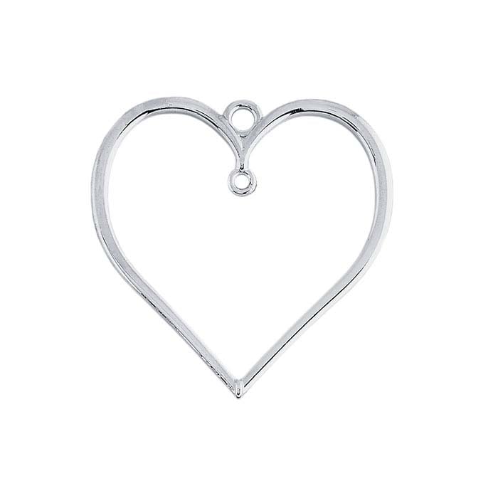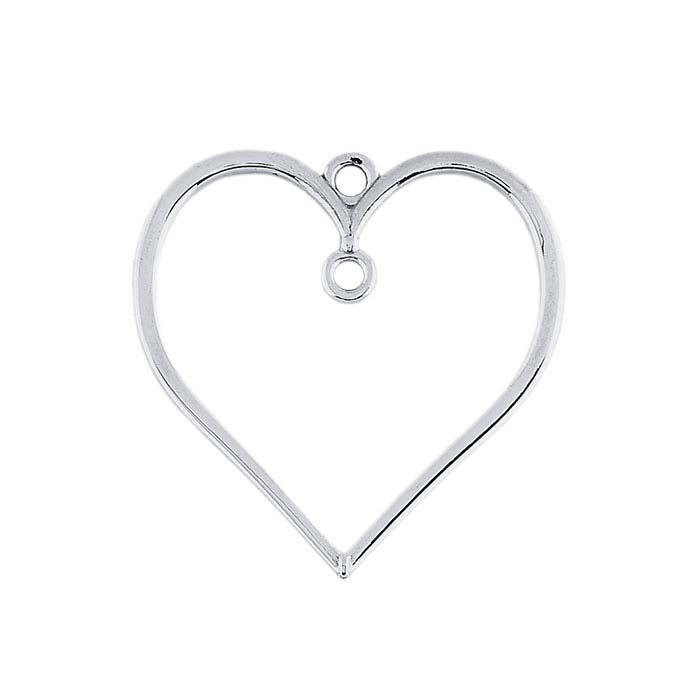 This sterling silver open heart pendant offers a multitude of design options for all types of jewelry styles. Add a jump ring or bail to the top of the pendant and thread it on a chain for a necklace; a single interior ring between the lobes of the heart is an attachment point for drops or dangles. The pendant is brightly finished on both sides.