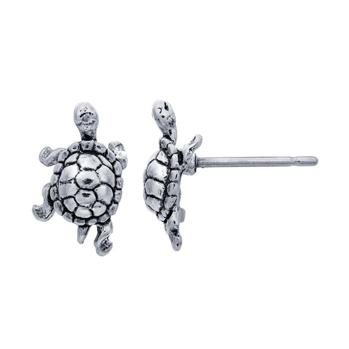 This sterling silver post earring features a realistic turtle that is oxidized to highlight detail on a surgical steel post. The friction post features a groove that helps provide the most secure and comfortable fit; post earrings require an ear nut to keep the post in place.