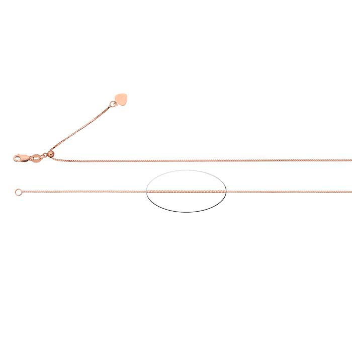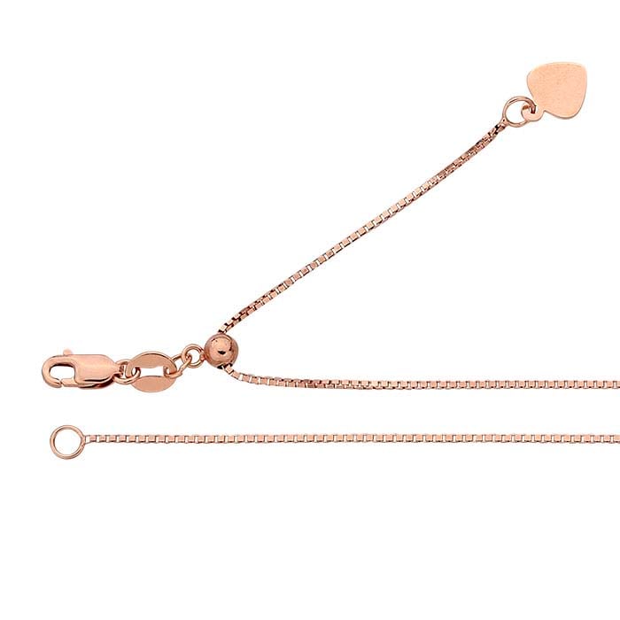 14K Rose Gold 0.7mm Venetian Box Chain, Adjustable