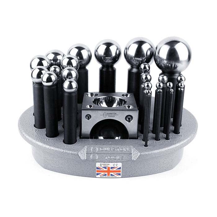 采用Durston屡获殊荣的设计和工程专业知识制造,这套打坯工具组以实惠的价格提供专业品质的效果。冲头和打坯块由硬化(52 HRC)、精密研磨的钢材制成,每个部件均经过高度抛光以减少划痕。该套装包括24个冲头和一个带有26个孔的打坯块。