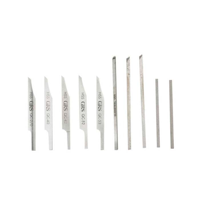 这套 GRS® 高速钢雕刻刀组合专为您的镶石任务精心挑选。组合包括九把雕刻刀:四种常见形状和一把空白雕刻刀。