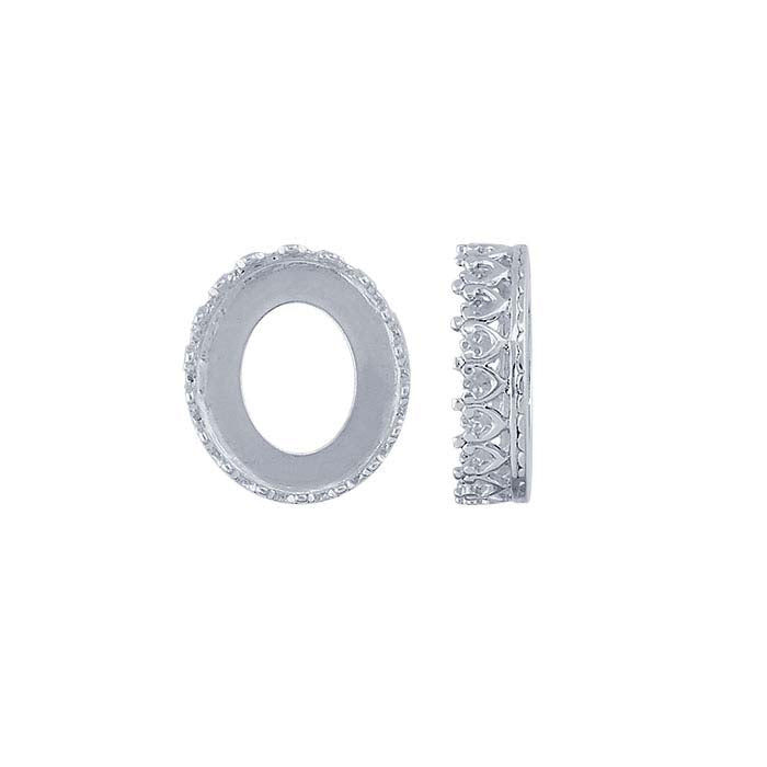 This open-back sterling silver bezel cup features a decorative, gallery-wire design and holds one 12 x 10mm oval stone or glass cabochon, flat-back stone or crystal. With walls modeled from decorative gallery wire, this bezel cup adds distinctive flair to any design. This easy-to-use bezel cup saves you time and provides clean lines and a professional-looking finish. Use it to create everything from earrings to cuff links to pendants. Simply solder the bezel cup to a finding or design, and set as desired.