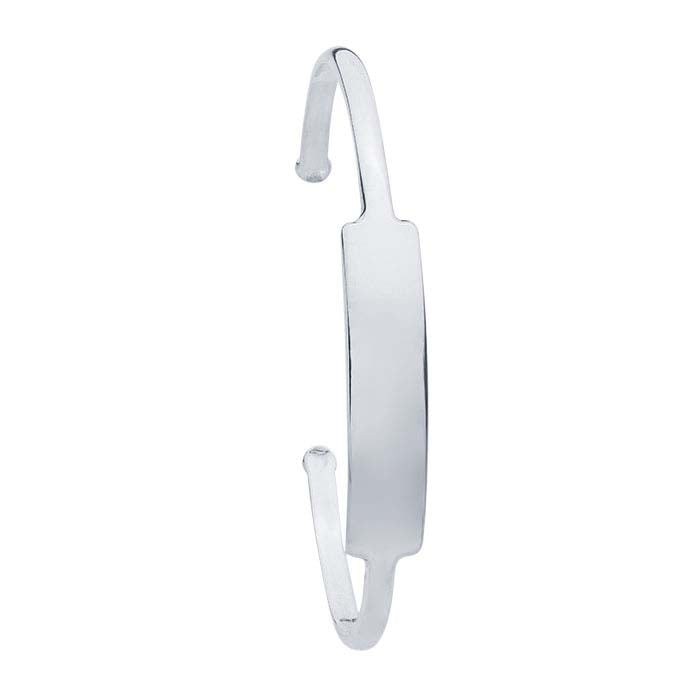 This sterling silver bangle bracelet features a 1-1/4” x 5/16” rectangular plaque in the center that can be customized as desired—engrave the plaque, or solder a bezel to the plaque to create a one-of-a-kind look.