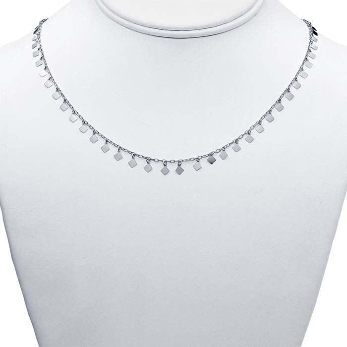 Sterling Silver Necklace with Diamond-Shaped Drops