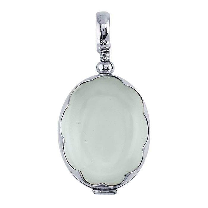 Sterling Silver Scalloped Oval Antique Glass Locket Pendant