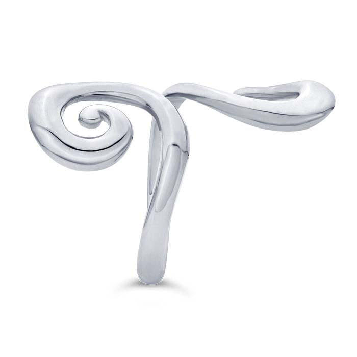 这款纯银戒指在每个末端都饰有旋涡设计。开放式戒臂设计营造出缠绕效果,可调节至6至8号,方便为大多数客户实现完美贴合。