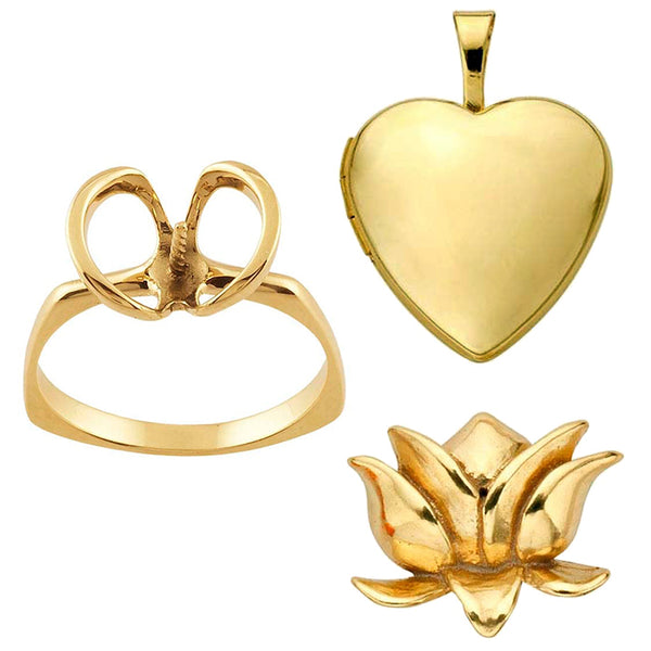 From the essentials to finely detailed components - browse our wide selection of yellow, white, and rose gold findings.