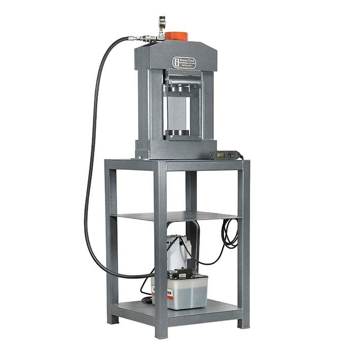 - مضخة هيدروليكية كهربائية قوية ذات سرعتين بقوة 1/2 حصان توفر الأداء العالي اللازم للضغط الإضافي الذي يولده هذا المكبس. هي هادئة جدًا (بمستوى صوت 67–81 ديسيبل)، تنتج ضغطًا يصل إلى 10,000 رطل لكل بوصة مربعة وتتميز بجهاز تحكم عن بعد بطول 10 أقدام يمنحك حرية الحركة الأساسية أثناء العمل. خزان الزيت يتسع إلى 1 جالون.