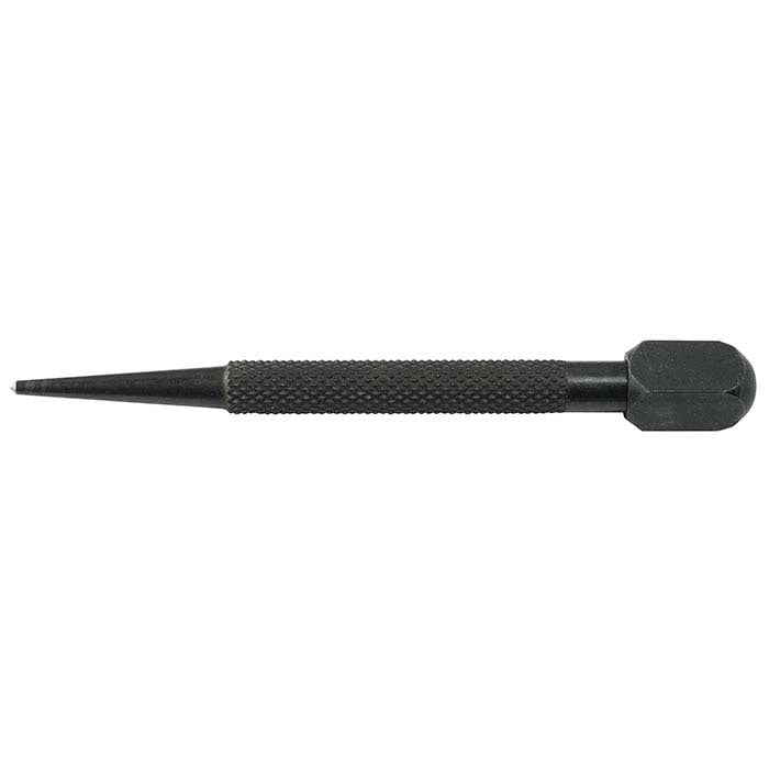 Use this hardened, blackened tool steel punch for accurate drilling or to make small dents. Its large head makes striking easier.