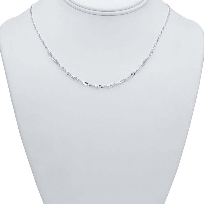 This sterling silver chain necklace features one length of 3.4mm serpentine chain in the middle of two 1.4mm curb chain lengths. This necklace is plated with fine silver to ensure a bright white color and to help protect against tarnish.