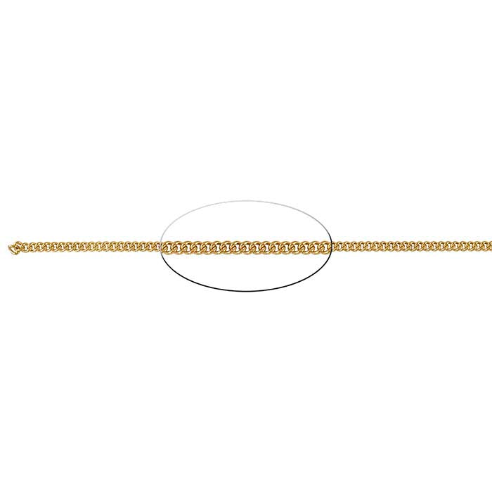 Create an eye-catching design with this 14/20 yellow gold-filled curb chain featuring. This chain provides a classic look, ideal for showcasing pendants, drops and charms. This gold-filled chain is plated with 14-karat yellow gold to ensure a uniform color.A curb chain starts as a cable design, then has its links twisted so they lie flat; the twist gives the links a slightly interlocked look that adds dimension to the chain profile.This chain is sold by the foot, allowing you to have exactly the length you need when you need it.