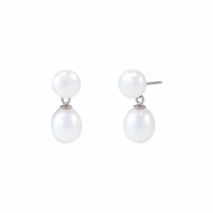 أقراط مسمارية مزدوجة من اللؤلؤ العذب مرصعة بالذهب الأبيض عيار 14 قيراط