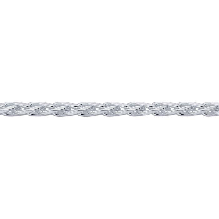 This sterling silver round wheat chain necklace component is open at the center with a 0.04" ID open ring at each chain end. Complete the necklace with a festoon pendant, a link component, an engravable plaque, or a short length of strung beads.A variation of the rope chain, wheat chain is made with alternating figure-eight links that are closely interconnected to present a braided look and an almost square profile.