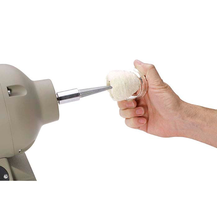 Easily achieve a lustrous polish on large concave surfaces with this dense cotton tapered buff. Suitable for use with a wide variety of polishing compounds, the shape of this buff provides full access to interior contours of hollowware, bracelets and cuffs, and hard-to-reach recessed areas. Use this buff on any tapered spindle; the shellac center helps stabilize the buff and protects the hole to ensure a long service life.