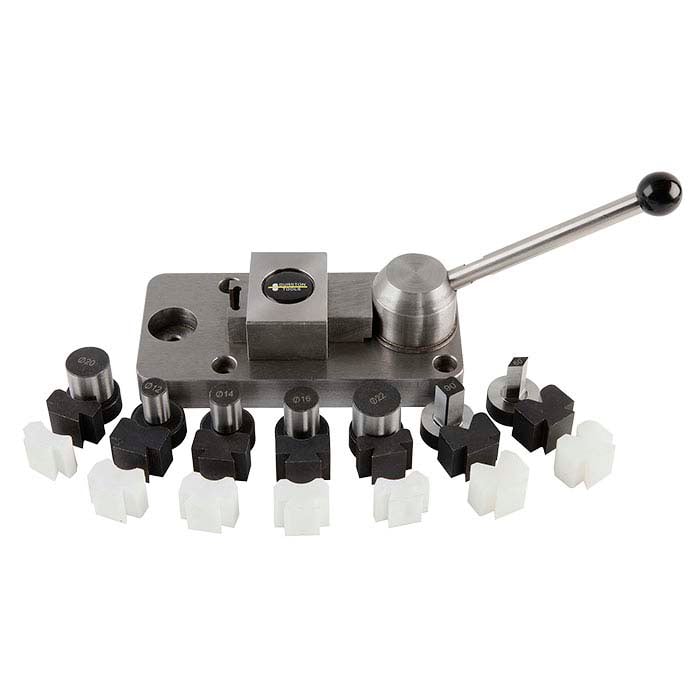 - مجموعتان (واحدة من الفولاذ، وأخرى من Delrin®) من خمسة قوالب دائرية: أقطار 12، 14، 16، 20، 22 مم