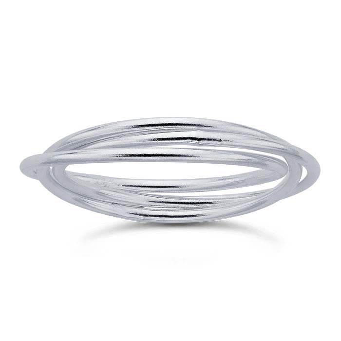 This sterling silver ring features a three interlocking bands that move freely. It looks great alone or stacked with multiple rings for a more dramatic look. Offer a wide selection of stackable rings that customers can choose from to create an individual, changeable look.