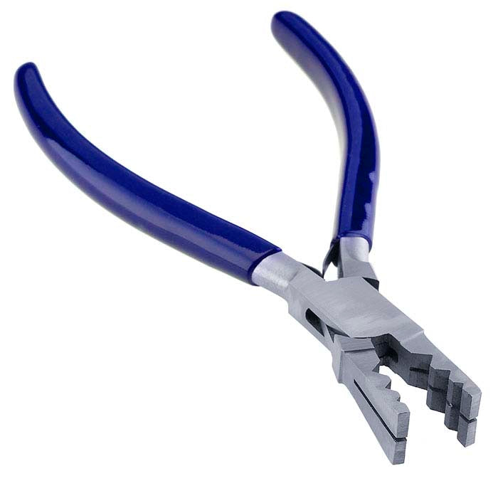 The jaws of these unique pliers are specially designed to hold tubing or small rods steady while being cut with a jeweler’s saw, ensuring a perfectly flush-cut end without collapsing the tube. Three corresponding notches in each jaw hold tubing ranging from 2 to 10mm OD. A 1mm slot along the length of the jaws fits a jeweler’s saw blade; set your blade in the slot and saw through the tubing held in the notches in a perfectly straight cut.• These pliers have a box joint; one half of the joint surrounds the other half, and the pivot is contained within. This joint holds its alignment far longer than a lap joint but allows the tool to open only as far as the box size.• The double-leaf spring consists of flat, tempered metal tabs attached to the inside of each tool handle, positioned to meet and hold the handles apart (and the jaws open) until they are squeezed closed; the spring delivers a fast, strong rebound for improved productivity.• The plastic-dipped handles deliver a comfortable, secure grip.