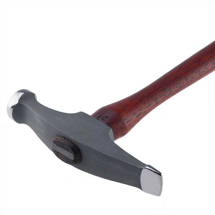 This Fretz® goldsmithing hammer features a highly polished round face for general purpose use, and a highly polished cross-peen face for riveting and forming. Intended for fine detail work on softer metals, this hammer is ideal for light forging, shaping, riveting and contouring.