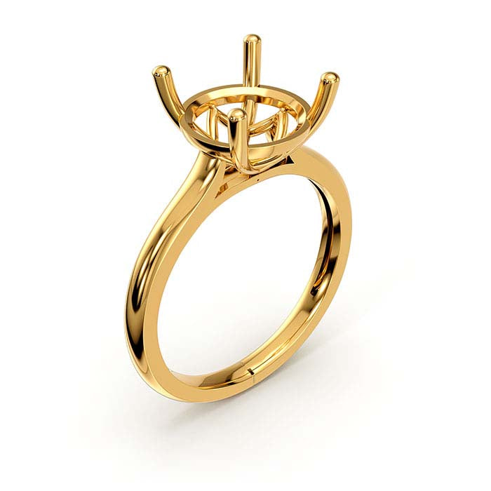 14K Gult Guld 9mm Rund Kurv Solitaire Sten Ringmontering