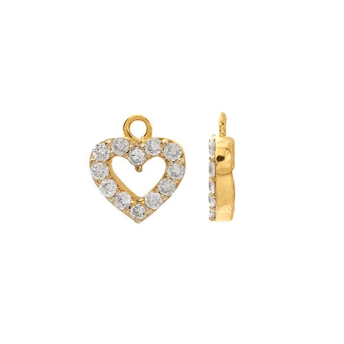 This 14-karat yellow gold charm features an open heart shape and is set with 12 0.005-ct. round white diamonds (I1-I2 grade/H,I color; 0.06CTTW). String it on a chain, connect it to bracelet, attach an ear wire, or use it as a jewelry tag or accent in a larger design.