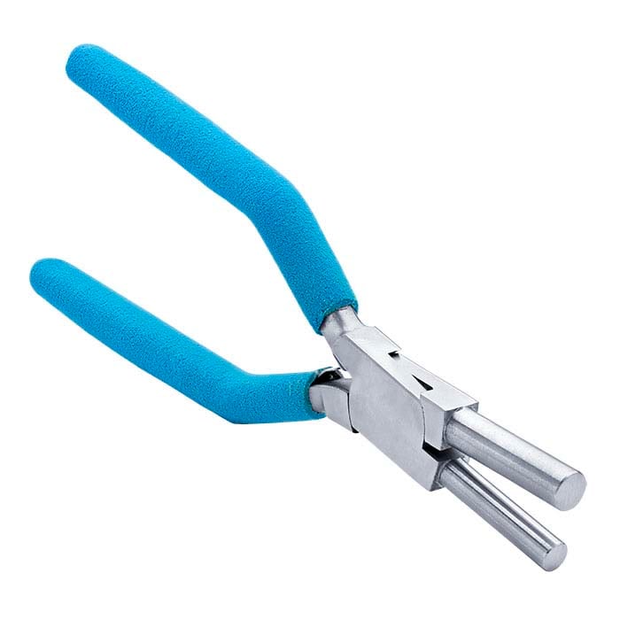 These Wubbers® round mandrel bail-forming pliers have two different-sized jaws, giving you the flexibility to create even, consistently round loops in two different diameters—0.35" (9mm) or 0.28" (7mm). Forming pliers have a variety of jaw configurations designed to maximize the ability to bend, shape or form wire, strip and sheet. The barrel-shaped jaws on these pliers do not taper, ideal for making consistent loops. Use these pliers to make bails, coils, small loops and jump rings for your jewelry designs; it is best used with dead-soft wire up to 12 gauge (sheet up to 20 gauge). The durable, rust-resistant stainless steel delivers reasonable life and good value; the matte finish helps reduce eye fatigue.• These pliers have a lap joint; one half of the joint overlaps the other, and a pivot is set through both halves.• The double-leaf spring consists of flat, tempered metal tabs attached to the inside of each of the tool handles, positioned to meet and hold the handles apart (and the jaws open) until they are squeezed closed, delivering a fast, strong rebound for improved productivity.• The handles are angled to give you a more powerful grip; the padded, non-slip, suede-textured grips provide comfort and reduce hand fatigue.