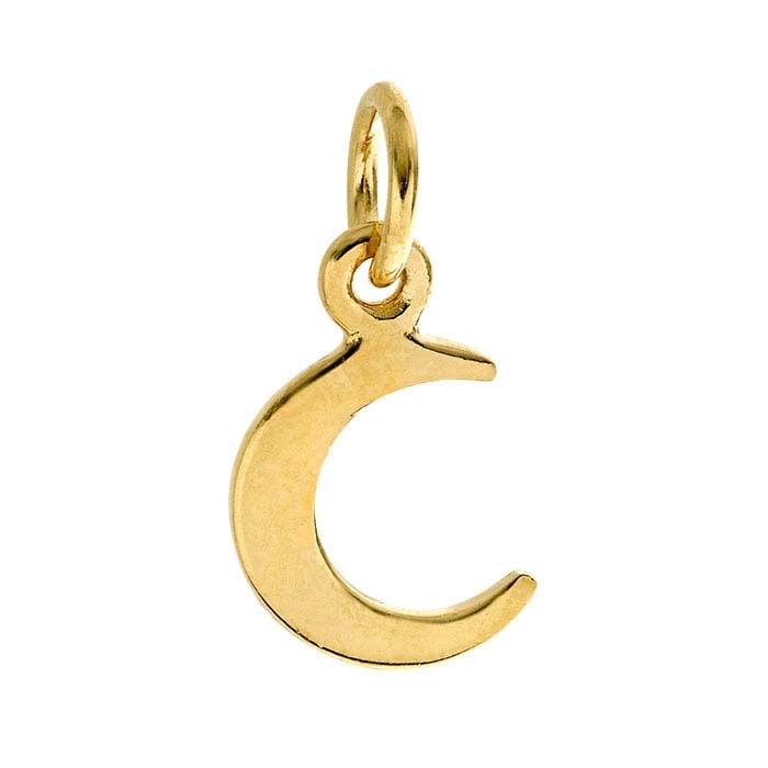 Dieser 14-karätig stark vergoldete Sterlingsilber-Anhänger zeigt ein Halbmond-Design mit einer glatten, glänzenden Oberfläche auf beiden Seiten. Verwenden Sie ihn als Mittelpunkt einer Kordel- oder Gliederkette oder kombinieren Sie ihn mit verschiedenen Anhängern, Komponenten oder Perlen für komplexere Designs. Ein Sprungring ist enthalten.