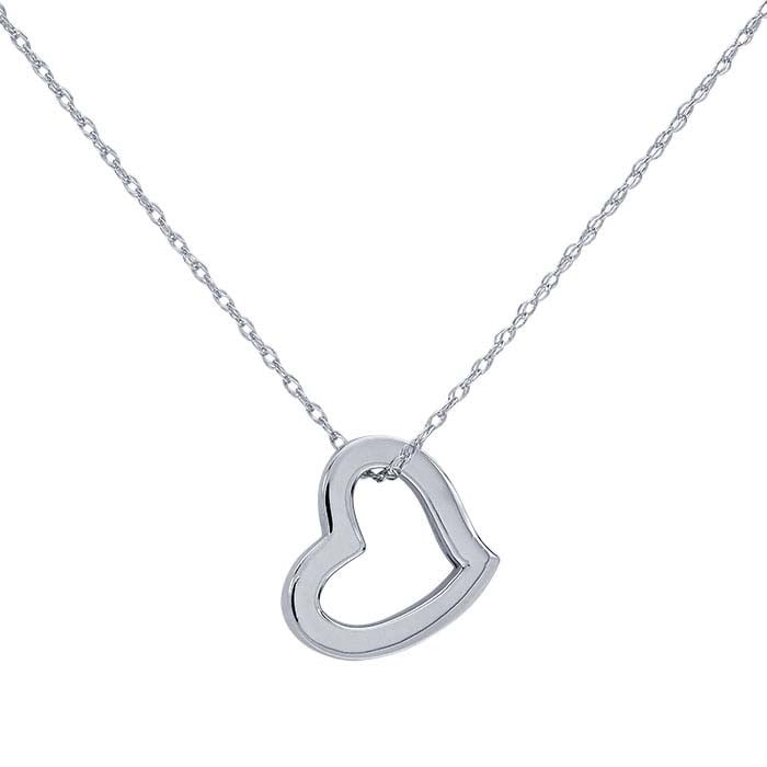 14K White Gold Open Heart Necklace